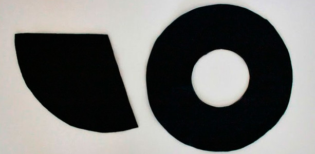 - Отже, циркулем накресліть потрібного розміру коло, тепер додайте до отриманого радіусу 25 сантиметрів (ця цифра визначає ширину полів, тому ви можете її змінювати) і з тієї ж точки накресліть велику окружність. Після цього виріжте деталь.