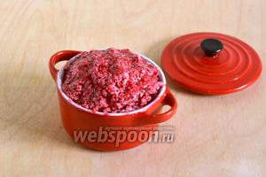 Подрібніть всі інгредієнти в максимально однорідну масу. Повторюся, до кінця однорідної суміш не буде, повинна вийти така олійна кашка з яскравими ягідними вкрапленнями.