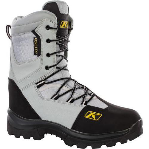 Американська снегоходная взуття Klim представлена широким асортиментом. Високотехнологічні снегоходные черевики забезпечують комфорт і зручність при русі на транспорті в будь-яку погоду. Перевагою ботів даного бренду є водостійка мембранна тканина, утеплювач різної щільності, система швидкого і автоматичного шнурівки. Дизайн продуманий до дрібниць, передбачено кілька «фішок». Наприклад, багатошарова конструкція, що захищає ноги від ударів, підтримка і фіксація стопи, підошва зчіплюється з підніжкою снігохода.