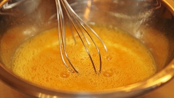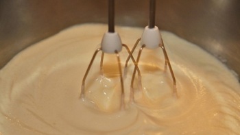 Отримана суміш збивається за допомогою міксера до тих пір, поки вона не стане пишною.