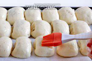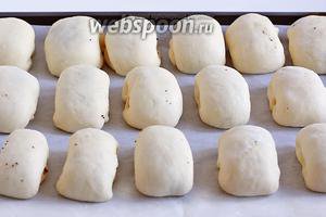 Так поступити з усім рештою тестом. Викласти пиріжки на деко швом вниз. Дати підійти в теплому місці.