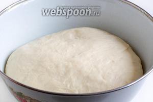 З усіх перерахованих продуктів замісити м’яке, дріжджове тісто. Накрити його плівкою і дати добре піднятися.