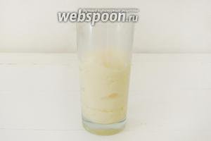 Приготуємо заварний крем так, як зазначено на пакетику. В моєму випадку порошок треба було залити молоком, додати цукор і поставити на вогонь. Я трохи зменшила кількість молока, щоб крем був густішим. Готовий крем я виклала в склянку, стінки якого були трохи змазані рослинним маслом. Застигаючи, крем приймає форму циліндра, і його можна розрізати на симпатичні кружечки.