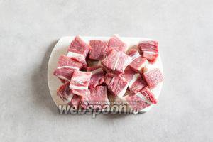 Грудинка нарізають на порційні шматки з розміром сторони 3-4 див.