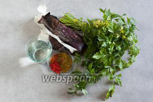 Вода 150 млКориця мелена 1 щіпкаПерець червоний мелений 0.5 ч. л.Петрушка свіжа 1 пучокСуміш хмелі-сунелі 2 ч. л.Тклапі 10 г імеретинський Шафран 1 г