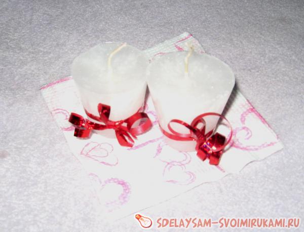 Викладаємо свічки на серветку і відрізаємо два відрізка стрічки по 20-25 см.