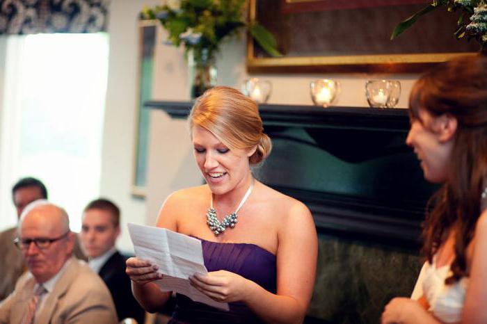 Складність завдання полягає в тому, що його доведеться виконувати на очах у багатьох глядачів. Для когось це дрібниця, а для когось- серйозне випробування. Врятувати становище може тільки те, що слова будуть підібрані заздалегідь, і залишиться лише красиво вимовити їх.