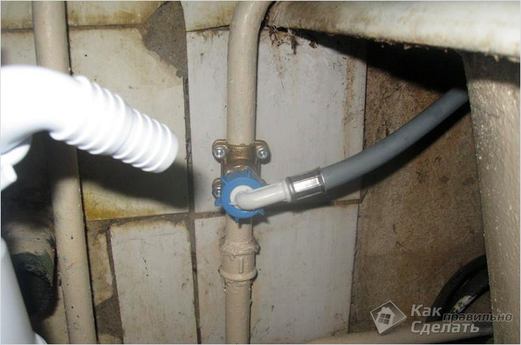 - Підключення води виконується за допомогою готових відводів або з використанням трійника від основного трубопроводу.