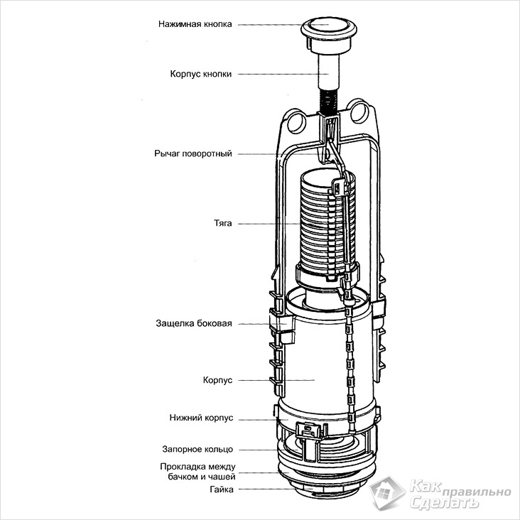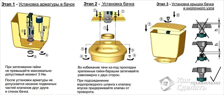 У кожному купленому бачку буде саме такий набір механізмів. Тепер детально розглянемо етапи монтажу бачка.