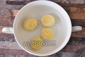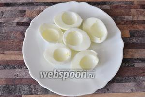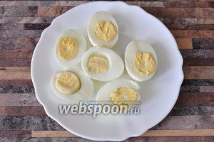 Яйця і моркву потрібно попередньо відварити. Далі остуджуємо яйця, очищаємо від шкаралупи і розрізаємо на 2 половинки.