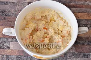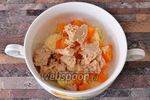 Додаємо до вмісту нарізану, відварену моркву невеликими кубиками.