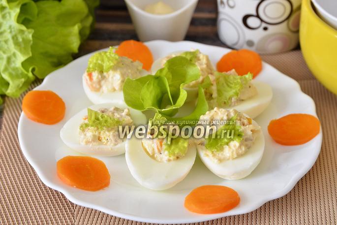 Пропоную приготувати один з найулюбленіших мною рецептів, а саме, яйця фаршировані ікрою тріски, морквою, сиром і листям салату.