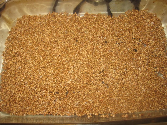 • Викладіть гречку на деко, найкраще візьміть з високими краями або спеціальну форму для духовки.