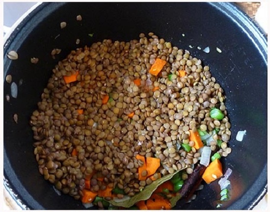 Каша з сочевиці в мультиварці, приготована з овочами