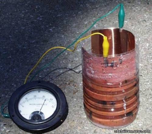 Спочатку робимо з міді оксид,як у першій частині.Припаюємо до куті оксидної пластини ізольований мідний провід,це буде мінус(негативний полюс).