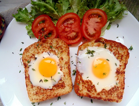 - Для кращої смаження яєчні в хлібі в кінці приготування можна накрити сковороду на кілька секунд кришкою.
