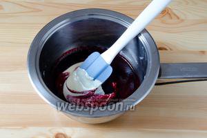 Додаємо в розтоплений шоколад пюре з голубики.