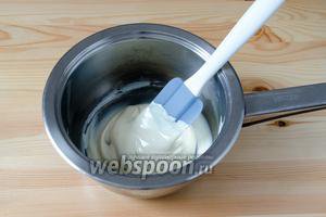 Білий шоколад розтоплюємо і злегка остуджуємо.
