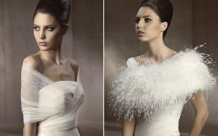 А ось сукні, виконані з струмливого і не фактурного матеріалу, доповнюють шовкові і романтичні весільні накидки на осінь. Фото показують різноманіття цих аксесуарів. Головне в їх виборі – це дати волю фантазії.