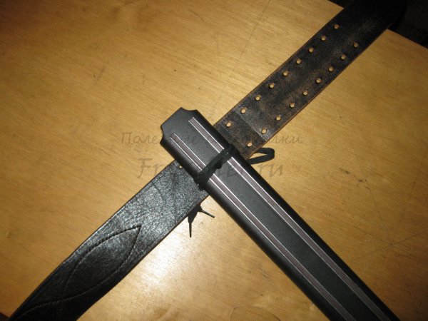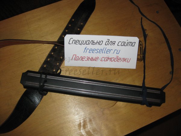 Верхній кінець держателя я міцніше прив’язав до ременя, а на нижньому кінці залишив шнурок для того, щоб прив’язувати його до стегна.