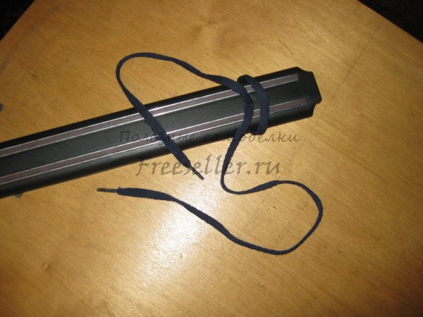 Щоб це зробити, я взяв сам утримувач і два довгих шнурка від взуття.