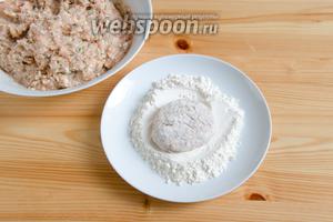 Формуємо з фаршу котлетки і обвалюємо їх у борошні.