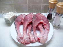 3. Рибні стейки я купила вже готові, тому мені довелося їх тільки помити і висушити паперовим рушником. Але якщо ви придбали цілу тушку, то очистіть її від луски, відріжте голову, хвіст і плавники, і випатрайте всі нутрощі. Після помийте її, наріжте порційними стейками товщиною близько 1,5 см і панірують їх у борошні.
