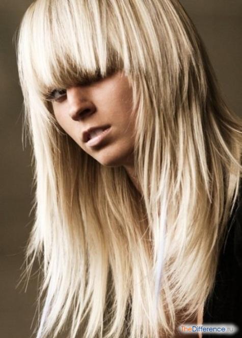 Неймовірно звабливою є зачіска, в якій пишний верх поєднується з дуже розрідженими довгими кінчиками. Особливий шарм при цьому досягається за рахунок довгої чубчика, покладеної набік. Пікантна зухвалість і одночасно томний погляд, безсумнівно, зроблять свою справу…