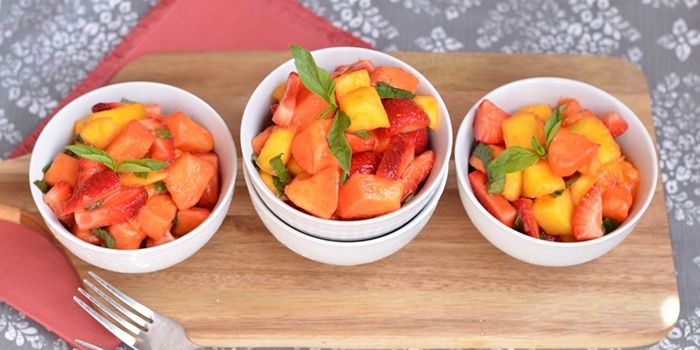 Рецепти фруктових салатів на день народження – ідеальне ласощі для дітей. У запропонованому варіанті поєднуються різні яскраві фрукти, а в якості заправки служить концентрований сироп, розведений соком лайма. Блюдо виходить освіжаючим і яскравим смаком. Необхідні інгредієнти:
