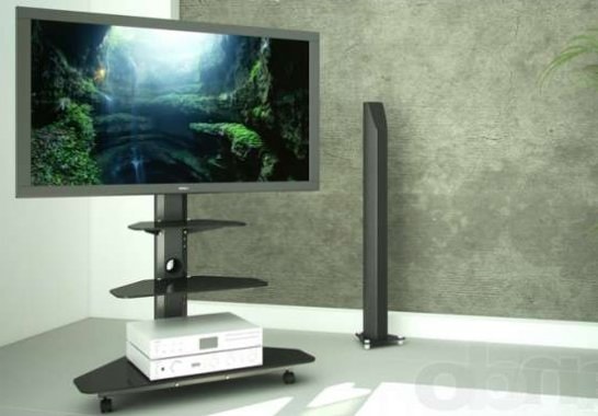 Подібні підлогові стійки можуть також додатково служити в якості тумби, якщо ви виберете відповідну модель. Підлогова стійка для телевізора надійно закріплює і фіксує його, тому можете бути спокійні за його безпеку.