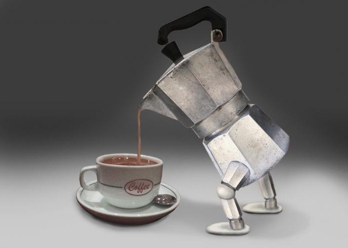 Саме зручно пристосування для того, щоб приготувати ранкову каву. Конструкція у нього нехитра – “колба”, ситечко для мелених зерен, і верхня частина – “чайничок”. Принцип тут простий. В ситечко необхідно насипати кави. У колбу – залити воду з вскипевшего чайника (залишаючи 0.5 см до кінця). На неї помістити ситечко з порошком і почекати, поки воно “опуститься” цілком на колбу (кава просочується водою – не потрібно намагатися опустити його насильно, інакше виллється вода). А потім закрутити зверху “чайник”. І поставити на вогонь. Кипляча вода з колби буде проходити через каву, і потім, за “трубці” буде тоненькою цівкою виливатися у верхній чайник готовий напій. Після того як ємність заповниться, кавоварку можна зняти з вогню і вилити підбадьорливий кави в чашку.