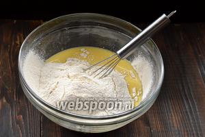 Додати просіяне борошно. Збити до того стану, щоб зникли всі грудочки.