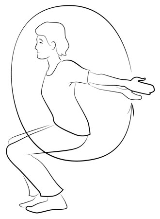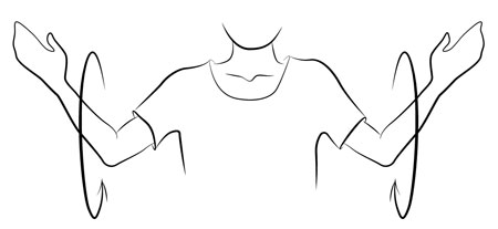 • Руки витягнуті в сторони. Згинаємо руки в ліктях і виконуємо обертання. По 6 разів в кожну сторону.