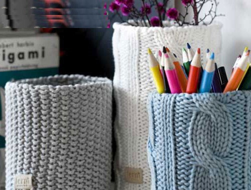 До всього іншого з пряжі за допомогою спиць і гачка рукодільниці отримують обкладинки для книг, тапочки, мішечки для зберігання, чохли для пляшок і термосів, в’язані кашпо для горщиків з квітами і навіть самі квіти. Здається, що цей список себе ще не вичерпав.