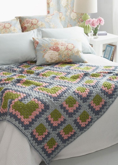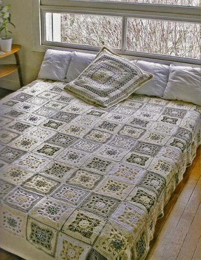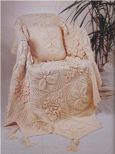 Самий звичний предмет інтер’єру, це, мабуть, плед або покривало. Розміри можуть бути самі довільні. Який диван або ліжко, крісло або диван, такий і плед. Форма і виконання пледа може бути вибрана з урахуванням будь-яких побажань. Пледи в’яжуть спицями та гачком, використовуючи різні прийоми, виконуючи об’ємні або плоскі візерунки.