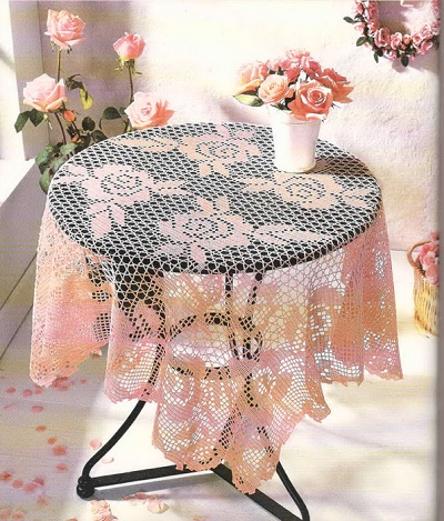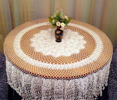Скатертини на стіл тонкої ажурною в’язки – спадок від наших бабусь. Кропітка ручна робота, виконана завжди з любов’ю, адже по-іншому так і не зліпиш. Круглий стіл з такою скатерью – гостинна центральна зона приміщення.