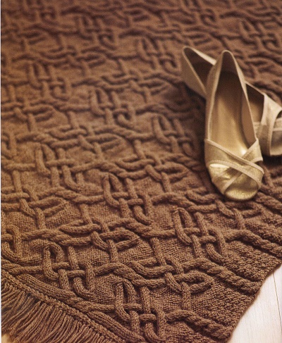 А ось повноцінні килими з пряжі – це досить новий напрямок для інтер’єру. Килим відрізняється від пледа тим, що для нього використовують більш товсту і грубу пряжу, в’язка повинна бути щільною, килим важче і міцніше пледа, не так схильний розтягуватися і драпіруватися.