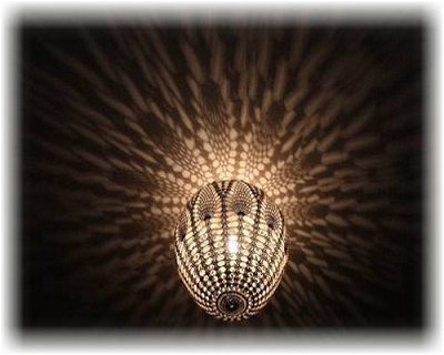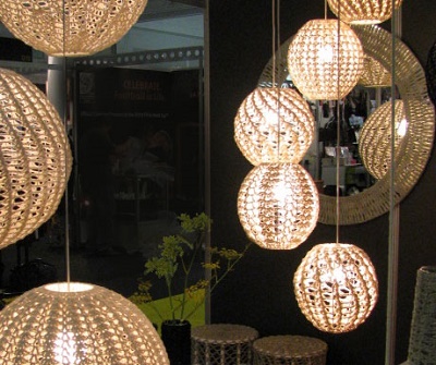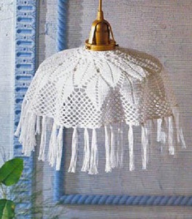 Використовуючи різні нитки, техніку переплетення їх, можна отримати чудову інтер’єрну штучку, а ввечері через ці ажурні візерунки буде литися світло, створюючи химерні тіні, доповнюючи загадковістю сутінки і настрій. Абажур з пряжі стане прикрасою для люстр або торшера.