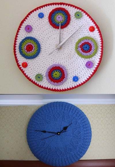Від традиційних пов’язаних інтер’єрних речей непомітно перейшли до оригінальним. В’язані годинник не часто зустрінеш у кого-небудь будинку.