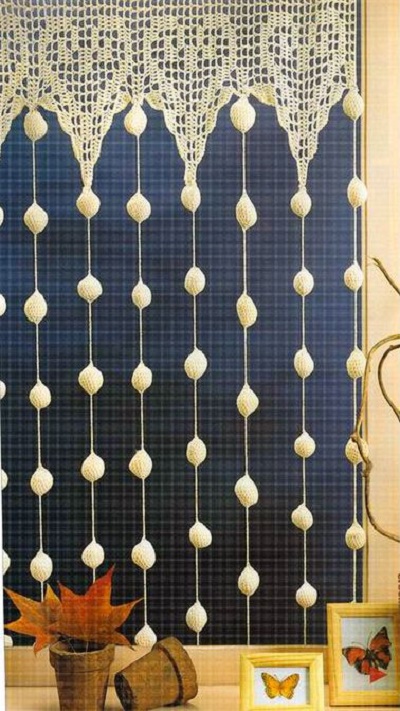 ся непоміченим, це штори або фіранки. Також в’язаними можна зробити розділяє завісу між приміщеннями. Для в’язання фіранок використовуються певні прийоми та візерунки, щоб полотно виходило легким, повітряним.