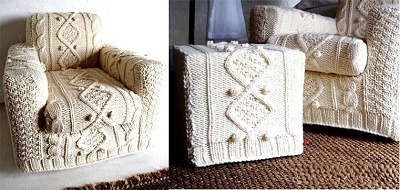 Якщо плед може бути і покривалом, і ковдрою, їм можна сховатися на свіжому повітрі або використовувати, як м’яку підстилочку, то бувають і спеціалізовані в’язані аксесуари-чохли, у своєму роді одяг для меблів.