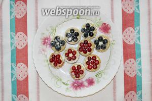 Випікайте тарти в духовці при 180°С, хвилин 15-20 до появи рум’яного кольору. Дайте тартам охолонути і витягніть їх з форми.