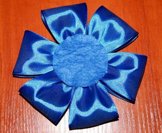 На превеликий квітці з задньої сторони потрібно приклеїти фетровий кружечок, щоб наш бантик був міцніше. Зробити це можна за допомогою клейового пістолета.