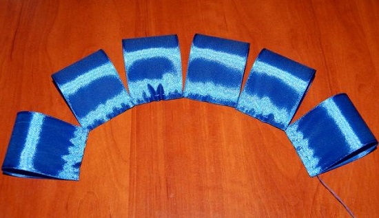 Візьміть атласну стрічку шириною 5 см і наріжте її на 6 відрізків (кожен повинен бути довжиною до 14 см).