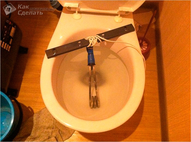 Якщо труба замерзла біля унітазу, то можна спробувати розморозити трубу, нагрів воду в цьому сантехнічному приладі Теном або кип’ятильником.