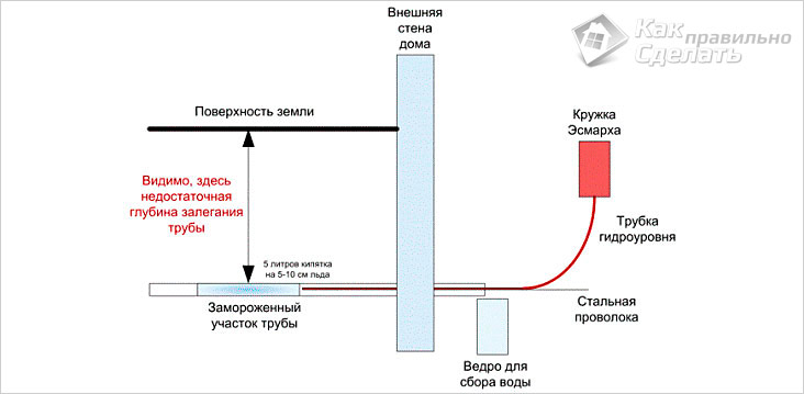 Розморожування каналізації з допомогою кружки Есмарха