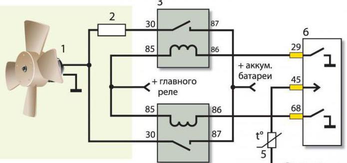 Схема вентилятора охолодження у машин з інжектором трохи інша. Тут усім керує електронний блок. Інформація з датчика включення спочатку аналізується контролером, а вже після передається на реле.