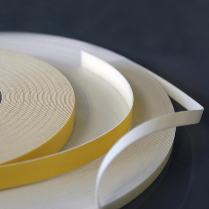 Клейка стрічка двостороння є поліпропіленової основою, на яку з обох сторін нанесений клейовий шар. Останній виконується на базі синтетичного каучуку. Зовнішній клейовий шар має захист у вигляді силіконізованого паперової смуги.