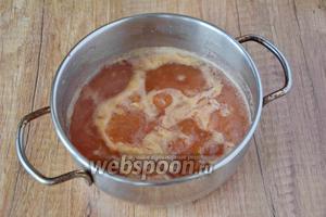 Тепер займемося яблуками. Яблука необхідно помити, розрізати на рівні частини, видалити насіння. Ріжемо довільно яблука, складаємо в каструлю. Заливаємо водою. Ставимо на середній вогонь, даємо закипіти. Потім зменшуємо вогонь, варимо хвилин 15-20.