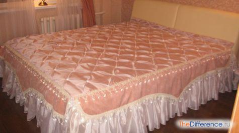 Ще трохи про те, в чому різниця між пледом і покривалом. Покривало може бути набагато більше, ніж класичний плед. Воно розміщується на ліжку так, що накриває її верхню площину і звисає по краях. Але трапляються і винятки – покривала-доріжки, залишають вільними краю ліжка.